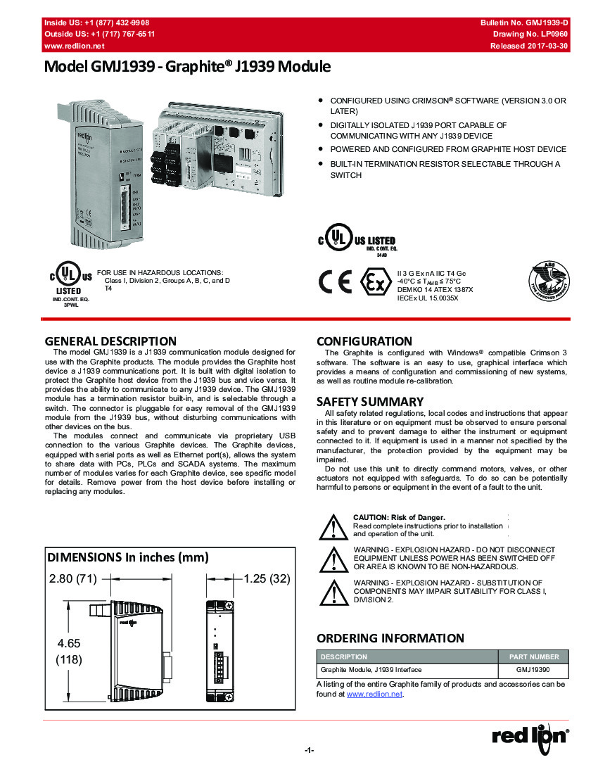 Communication Unit GMJ19390 is part of Red Lion's Graphite Operator Interface Terminal Expansion Modules. This module specializes in supplying the Graphite Host Displays with the J19139 Protocol Conversion and Communication option, removing the need for external communication gateways. The approvals for most parts including this unit from the Graphite family are: