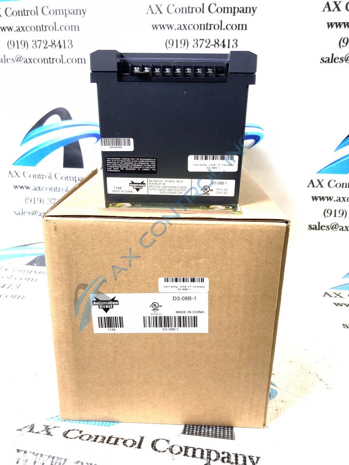 The D3-08B-1 I/O Base contains 8 slots for I/O devices, and other types of devices. The D3-08B-1 can support one CPU base and one expansion base. The D3-08B-1 is a 8-slot I/O base and the expansion bases must be a 5-slot or 8-slot expansion bases. The input voltage range is 85-264VAC 47–63 Hz and the base power consumption is 85 VA maximum. The maximum inrush current maximum is 30A 1ms. Dielectric strength is 1500VAC for one minute between terminals of AC power supply, run output, common, and 24VDC.