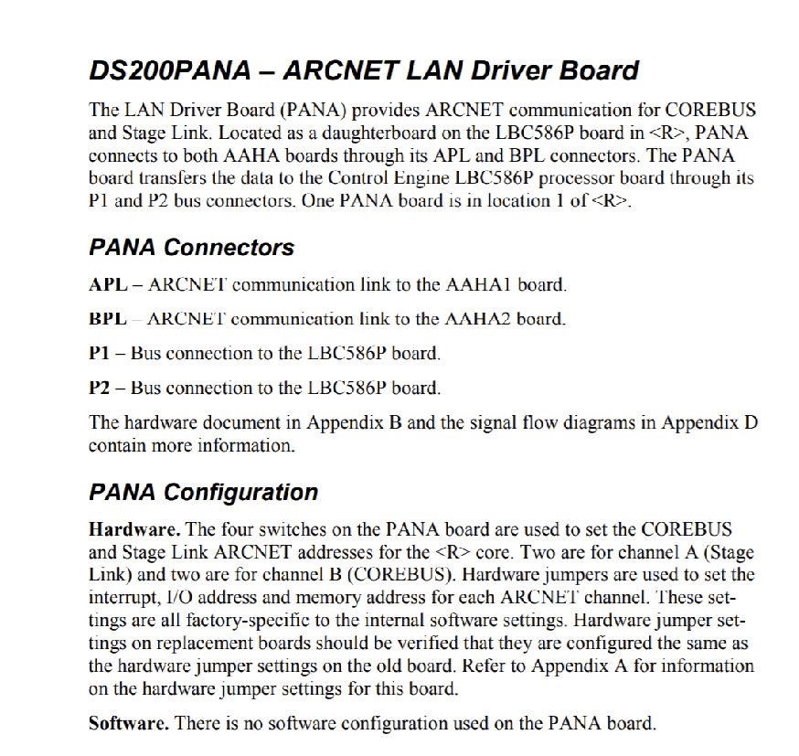 Other relevant DS200PANAH1ABB board components include a series of both hardware jumpers and switches. This No-LAN ARCNET board's jumpers are used to set: