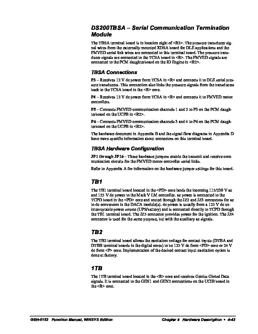 This DS200TBSAG1 printed circuit board is truly better-definable as a Serial Communication Termination Module, based on this functional description's appearance in original Mark V Series instructional manual materials.