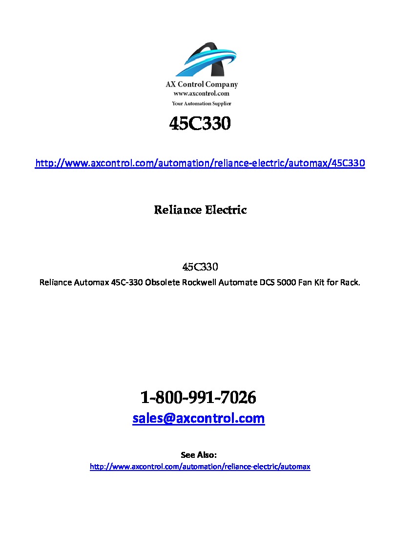 The 45C330 module is the fan kit for the AutoMate six slot rack. This product was made by Reliance Electric. The 45C330 fan kit is no longer produced by the OEM, but AX Control may have it in stock, so be sure to contact us to verify that it is in our stock. We typically ship products we have in stock the same day it is ordered.