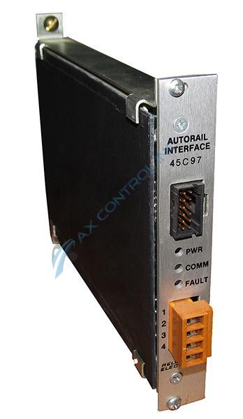 The 45C97 unit is an AutoRail Interface that Reliance Electric made to be used with the AutoMate line of programmable logic controllers. This product is no longer in production by the original manufacturer, but AX Control may carry this product in stock. The availability of the 45C97 AutoRail Interface can be seen on our website. If you order one of our products that are listed as “in stock,” then we will most likely be able to ship it that same day, provided your order is placed before 4:00 p.m.
