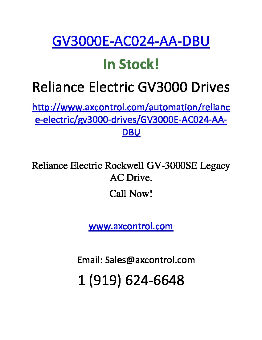 Drive number GV3000E-AC024-AA-DBU is one of the bookshelf drives produced by Reliance Electric as part of their GV3000 drive series. This drive has two alternate parts: the European stock and US model numbers. The European stock number is 896.08.11, which will denote the power module's size and the components for the inverter, which are braking transistor circuits and DC-bus terminals for this model. The US model number is 240ER4060, which helps with the identification of: