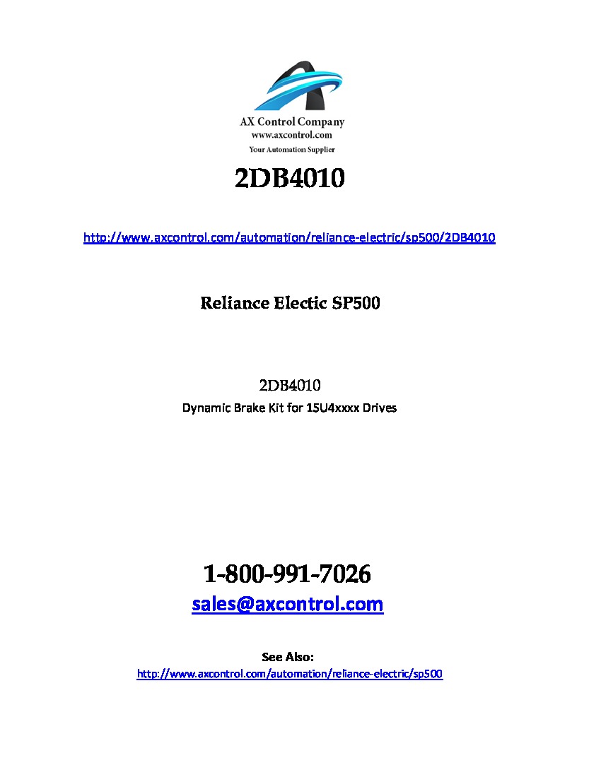 2DB4010 is a Low Energy Snubber Resistor Braking Kit for 1SU4xxxx SP500 Reliance Electric drives. The voltage level is automatic and the kit does not allow for adjustments. Do not let the kit temperature rise above 50° C. The user must calculate the peak and average power of the kit application in order to determine the size of the snubber resistors. If the peak and average power cannot be calculated due to unknown values (such as system inertia), select the braking units based on the drive horsepower rating and the application duty cycle. A DC current composes the input to this kit. The DC bus is one of the three lamp indicators on the kit.